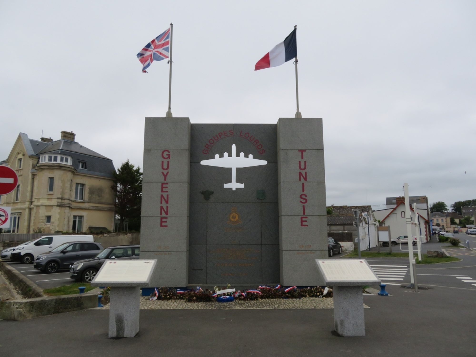 Une cérémonie s’est déroulée vendredi 12 mai 2023 pour l’inauguration des nouveaux aménagements au mémorial des groupes lourds Guyenne et Tunisie à Grandcamp-Maisy (Calvados). Deux pupitres ont été installés pour perpétuer l’histoire et inscrire les noms des 216 aviateurs.