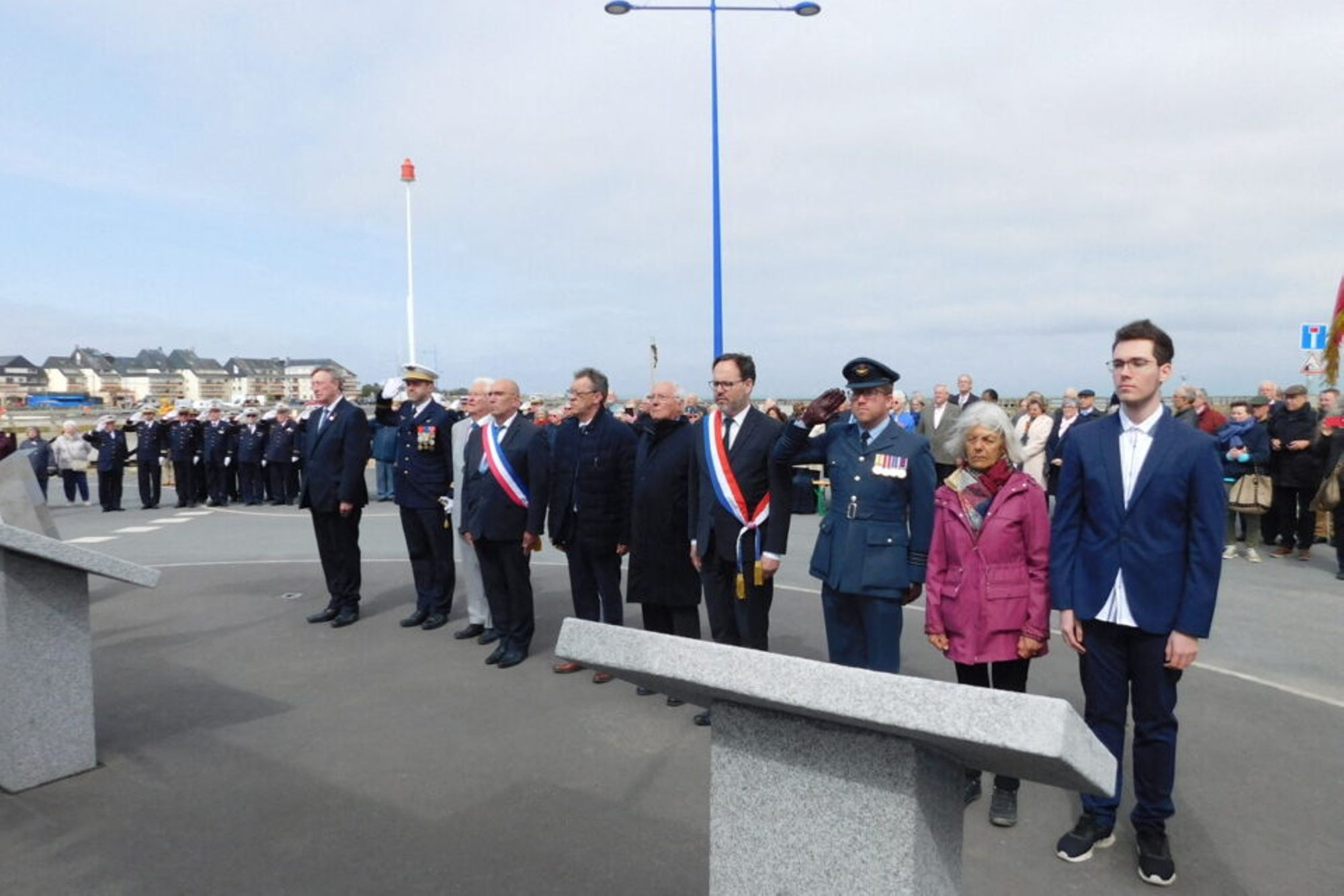 Une vive émotion a été ressentie au passage de deux rafales au début du rassemblement. L’association des anciens et amis des groupes lourds, présidée par Paul Bogaert, dont l’engagement est d’honorer la mémoire des pilotes, a profité du nouvel aménagement quai Chéron pour mieux identifier le mémorial, érigé en 1988 à la mémoire des aviateurs français des groupes de bombardement Guyenne et Tunisie morts pour la France au cours de la Seconde Guerre mondiale.